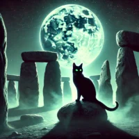 La pleine lune éclaire la lande. Un chat noir s’étire au pied d’un dolmen, ses yeux phosphorescents fixent l’invisible. Il saute, s’évapore entre les pierres. Derrière lui, le silence s’épaissit.